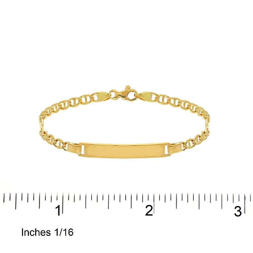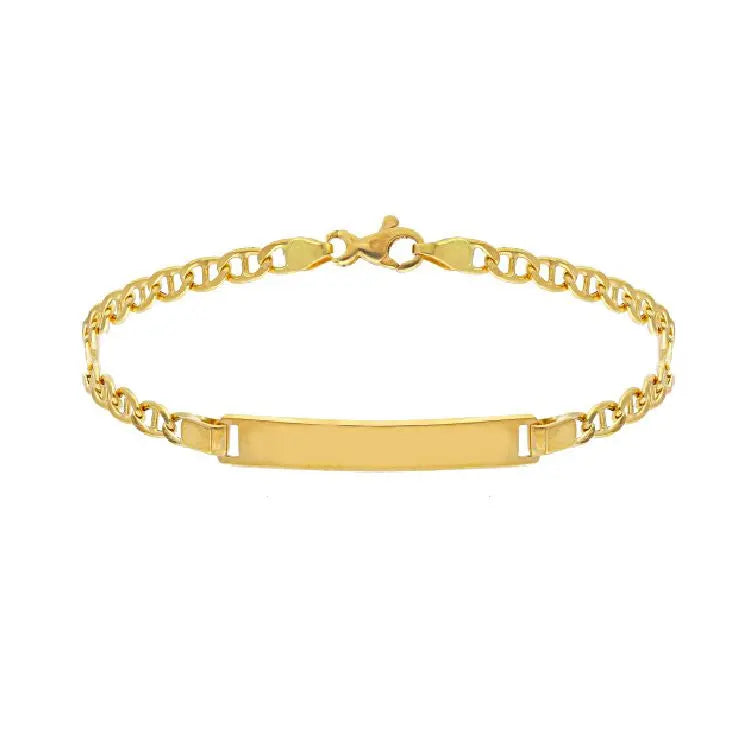 Élevez votre style avec le bracelet ID léger à maillons marins en or jaune massif 18 carats, un parfait mélange d'élégance et de polyvalence. Fabriqué en Italie en or jaune massif hypoallergénique 18 carats, ce bracelet exquis est conçu pour impressionner. Doté d'une chaîne classique à maillons marins, le bracelet est à la fois durable et élégant, avec un fermoir mousqueton sécurisé pour un port facile. La chaîne mesure 7,25 pouces de longueur et 0,12 pouce de largeur, ce qui en fait la taille parfaite pour les adolescents recherchant une touche de sophistication.