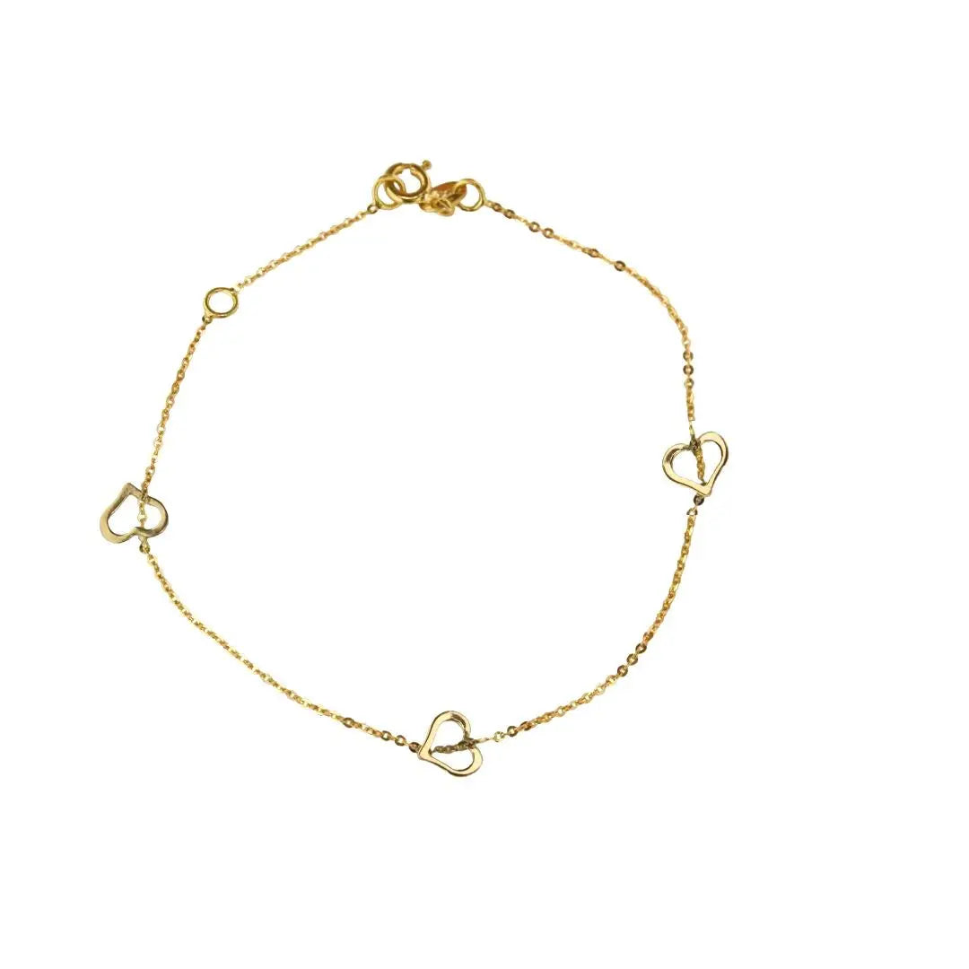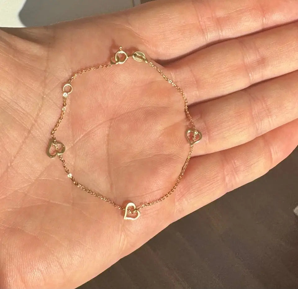 Découvrez l'élégance de notre bracelet en or jaune massif 18 carats Open Hearts, un chef-d'œuvre de l'artisanat italien conçu pour sublimer toute tenue. Ce bracelet exquis présente une série de cœurs ouverts polis, méticuleusement alignés le long d'une fine chaîne à câble taillée en diamant. Il mesure 7 pouces de longueur avec un anneau supplémentaire à 6,50 pouces, permettant un ajustement personnalisable qui complète toute tenue. Fabriqué en or jaune 18 carats hypoallergénique, ce bracelet est exempt de plomb et de nickel, garantissant qu'il est sûr et confortable pour tous les porteurs.