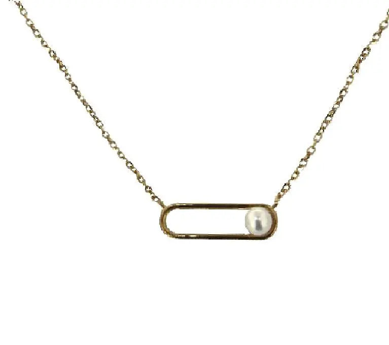 Collier rectangle arrondi avec perle flottante en or 18 carats