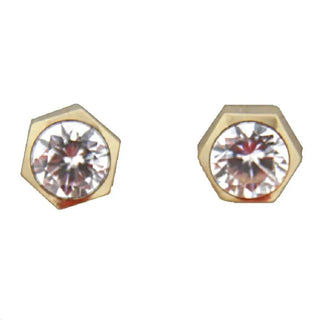 Brillez avec style : boucles d'oreilles à tige hexagonale en or 18 carats et zirconium cubique pour jeunes filles