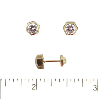 Sublimez le style de votre enfant avec nos boucles d'oreilles à tige hexagonale en or 18 carats et zirconium cubique, parfaitement dimensionnées pour les filles de 3 à 15 ans. Chaque boucle présente un magnifique design hexagonal de 5,6 mm (0,22 pouce), serti de zirconium cubique brillant qui ajoute une étincelle sophistiquée à n'importe quel look. Ces boucles d'oreilles allient élégance intemporelle et touche moderne, en faisant un ajout fantastique à la collection de bijoux de toute jeune fashionista.