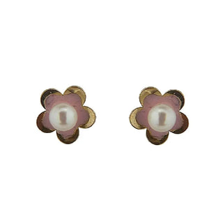 Offrez à votre petite le charme intemporel de nos boucles d'oreilles à vis en or 18 carats, perle, fleur et taille diamant, et regardez ses yeux s'illuminer de joie.