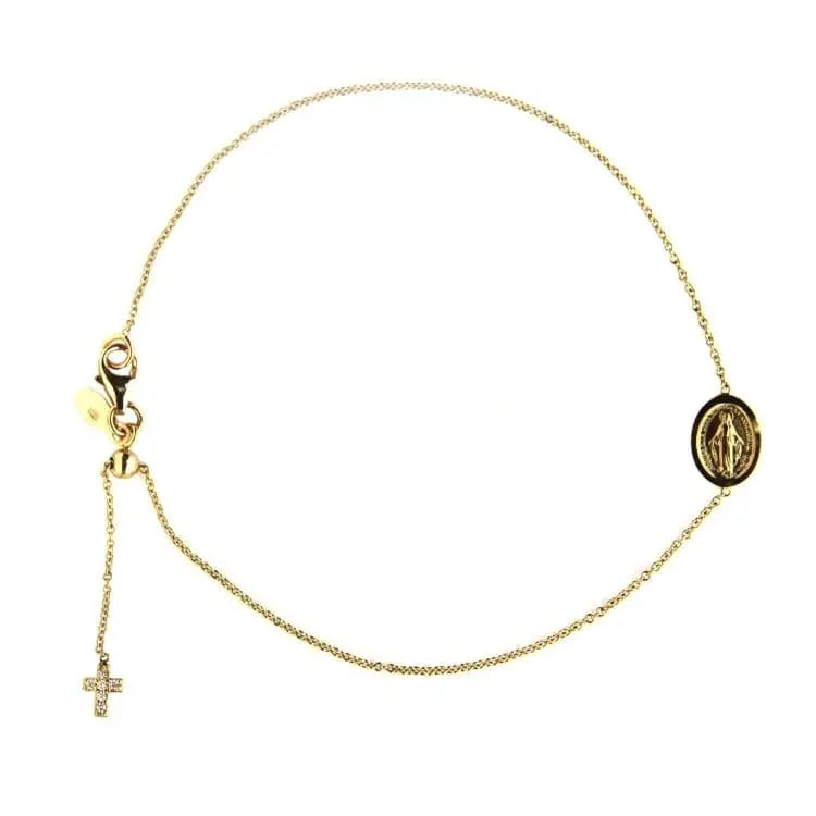 Élégance Divine : Bracelet Médaille Miraculeuse et Croix en Zirconia en Or Massif 18 carats