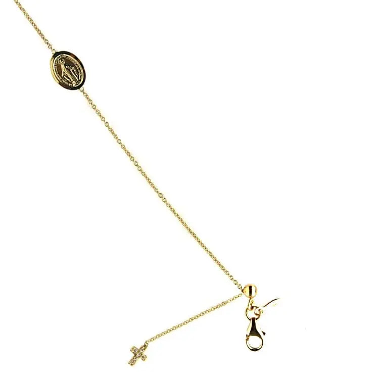 Bracelet en or massif 18 carats avec médaille miraculeuse et croix en zirconia