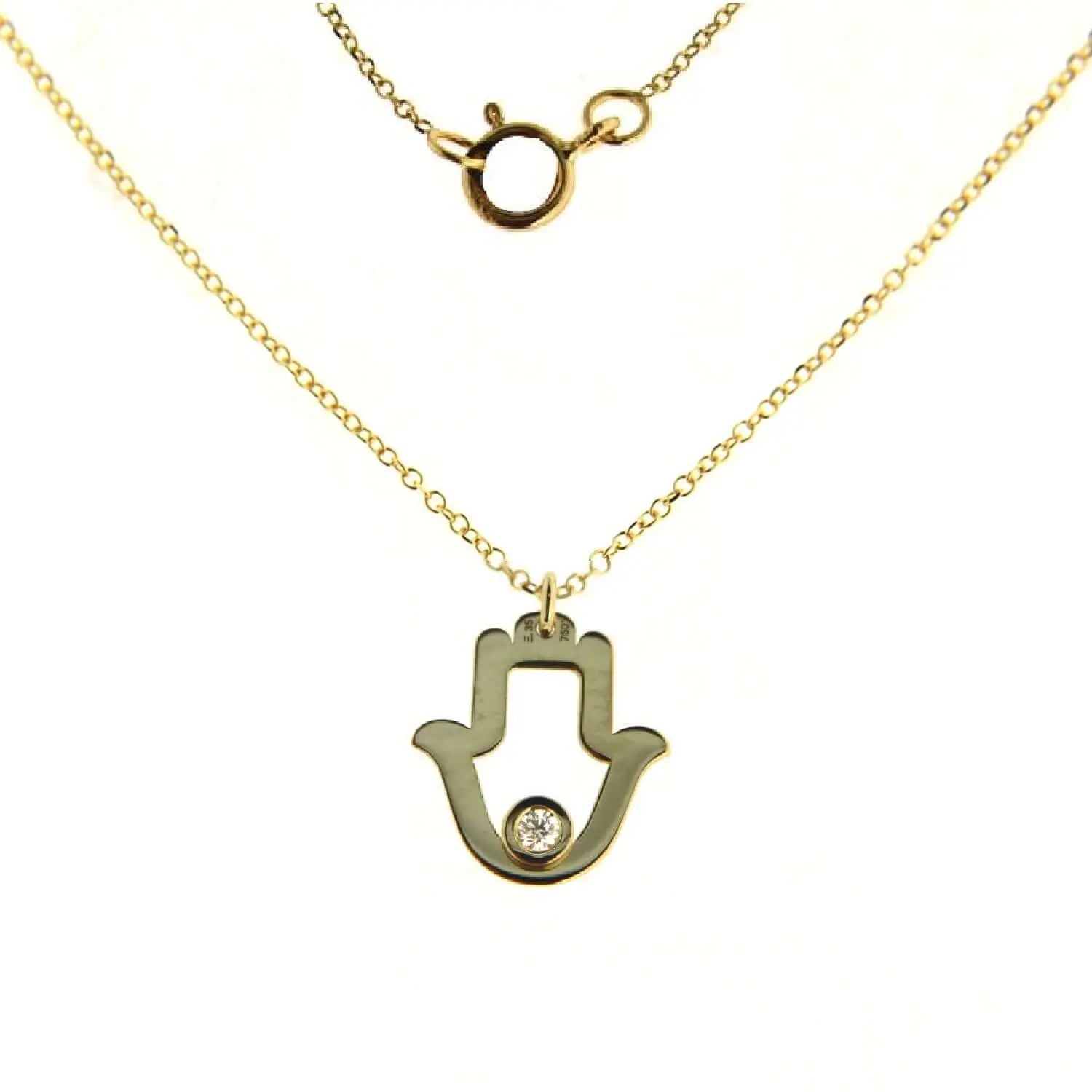 Délicat mais puissant, le collier Hamsa ouvert poli en or jaune massif 18 carats avec diamant allie design intemporel et symbolisme ancien. Mesurant 16,5 pouces avec un anneau réglable à 15 pouces, ce bijou repose magnifiquement sur la clavicule, parfait pour un port quotidien ou un superposition élégante.