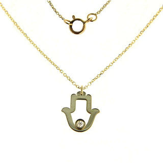 Le centre est une main Hamsa ouverte polie, un talisman précieux censé offrir protection spirituelle, force et bénédictions. En son cœur, un diamant naturel de 0,02 ct ajoute une brillance raffinée — représentant la clarté intérieure et un œil vigilant contre la négativité.