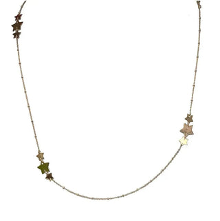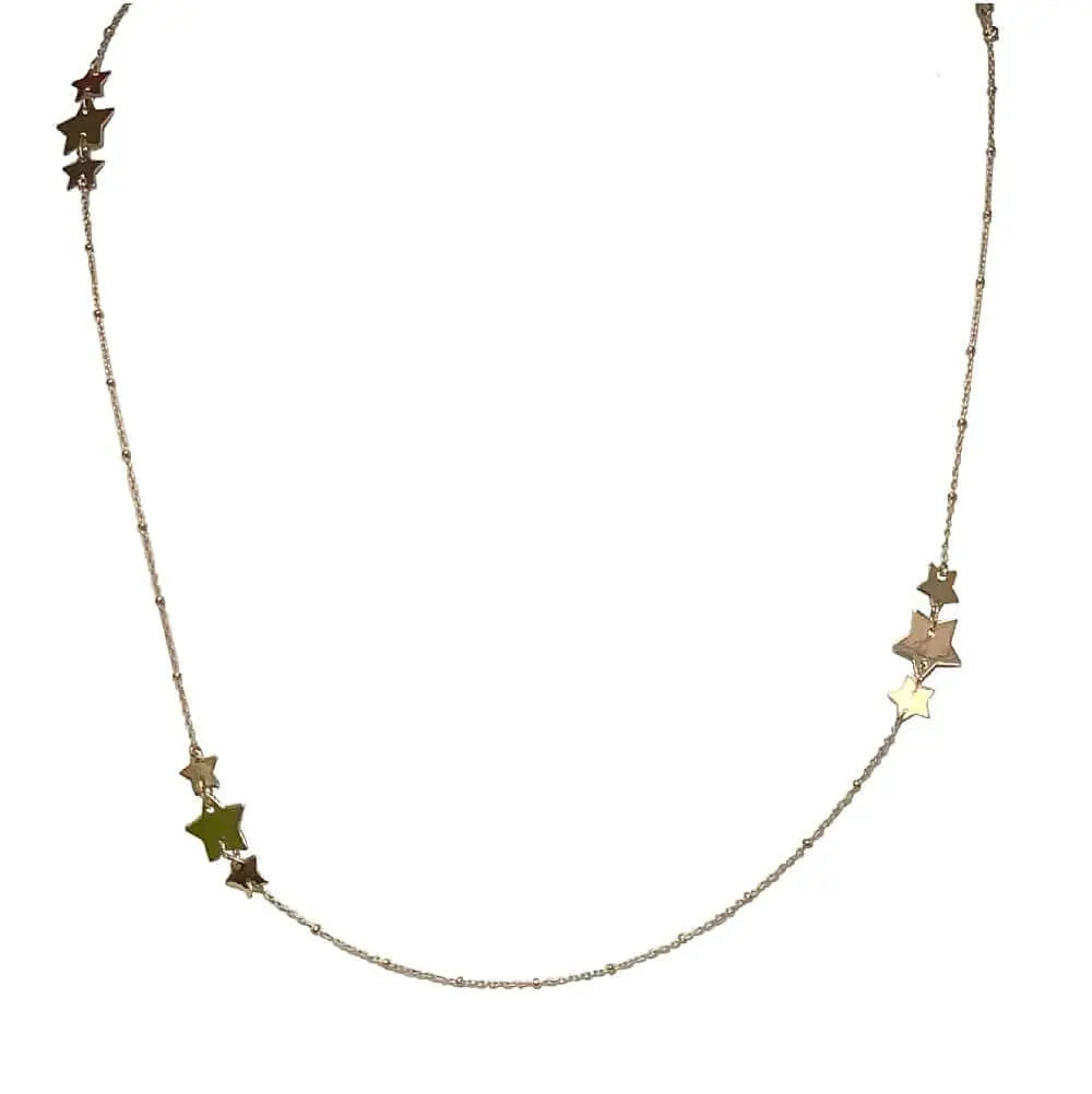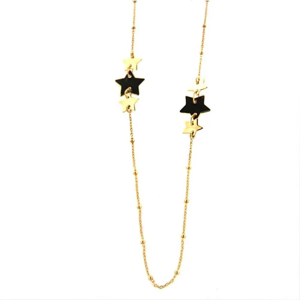 Collier long de 24 pouces en or jaune massif 18 carats avec étoiles polies et mini perles de 1,35 mm