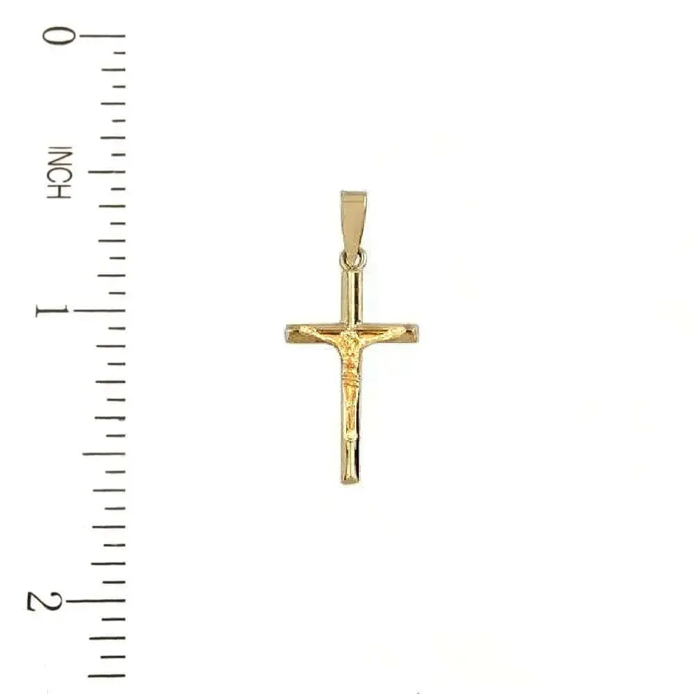 Découvrez l'élégance intemporelle de notre pendentif crucifix petit tube losange en or jaune massif 18 carats, présentant un design classique de tube creux losange complété par une figure du Christ à finition satinée. Mesurant 1,05 x 0,47 pouces, bail inclus, ce pendentif illustre un artisanat traditionnel mêlé à une esthétique moderne.