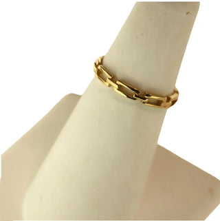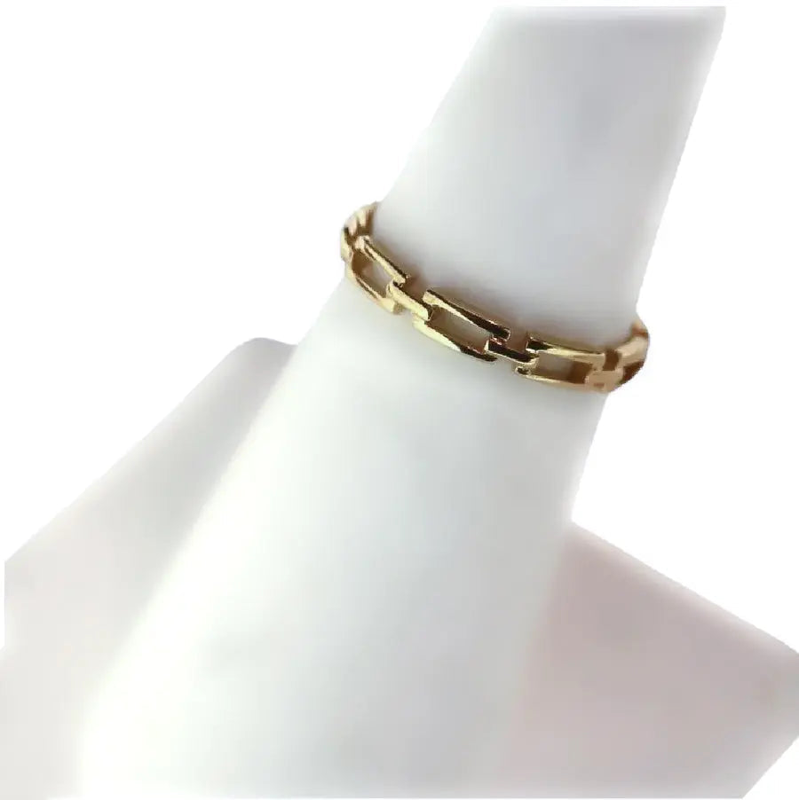 Découvrez l'élégance moderne de la bague chaîne à maillons rectangulaires ouverts fins en or jaune massif 18 carats. Cette pièce exquise, fabriquée en Italie, présente un design unique de maillon rectangulaire ouvert de 2,6 mm de large et pèse 1,60 gramme. Fabriquée en or jaune massif 18 carats hypoallergénique, cette bague est parfaite pour ceux qui apprécient à la fois le style et le confort.