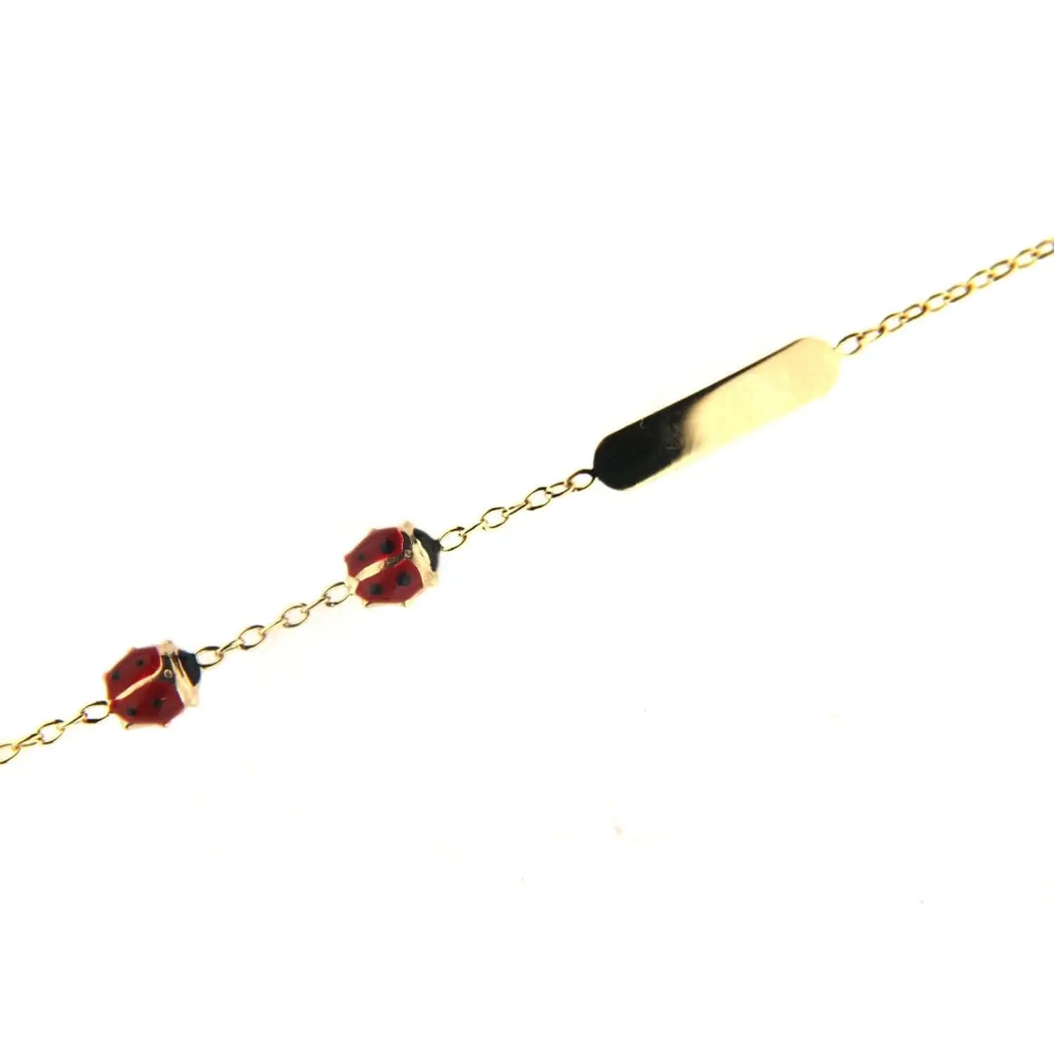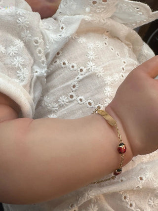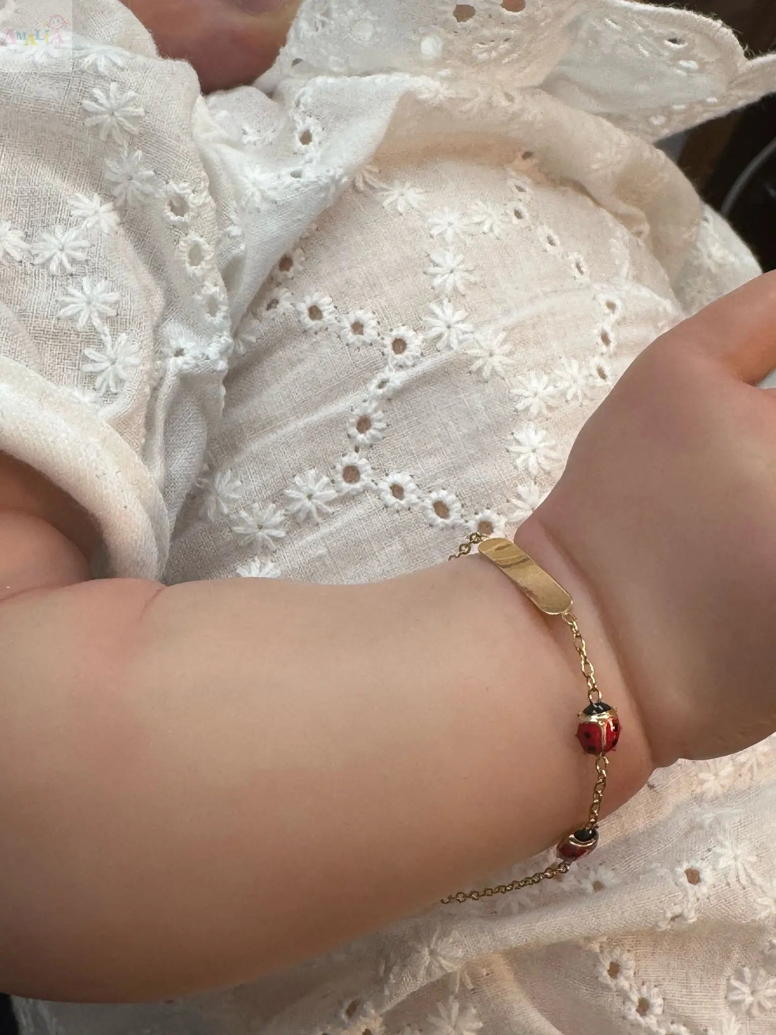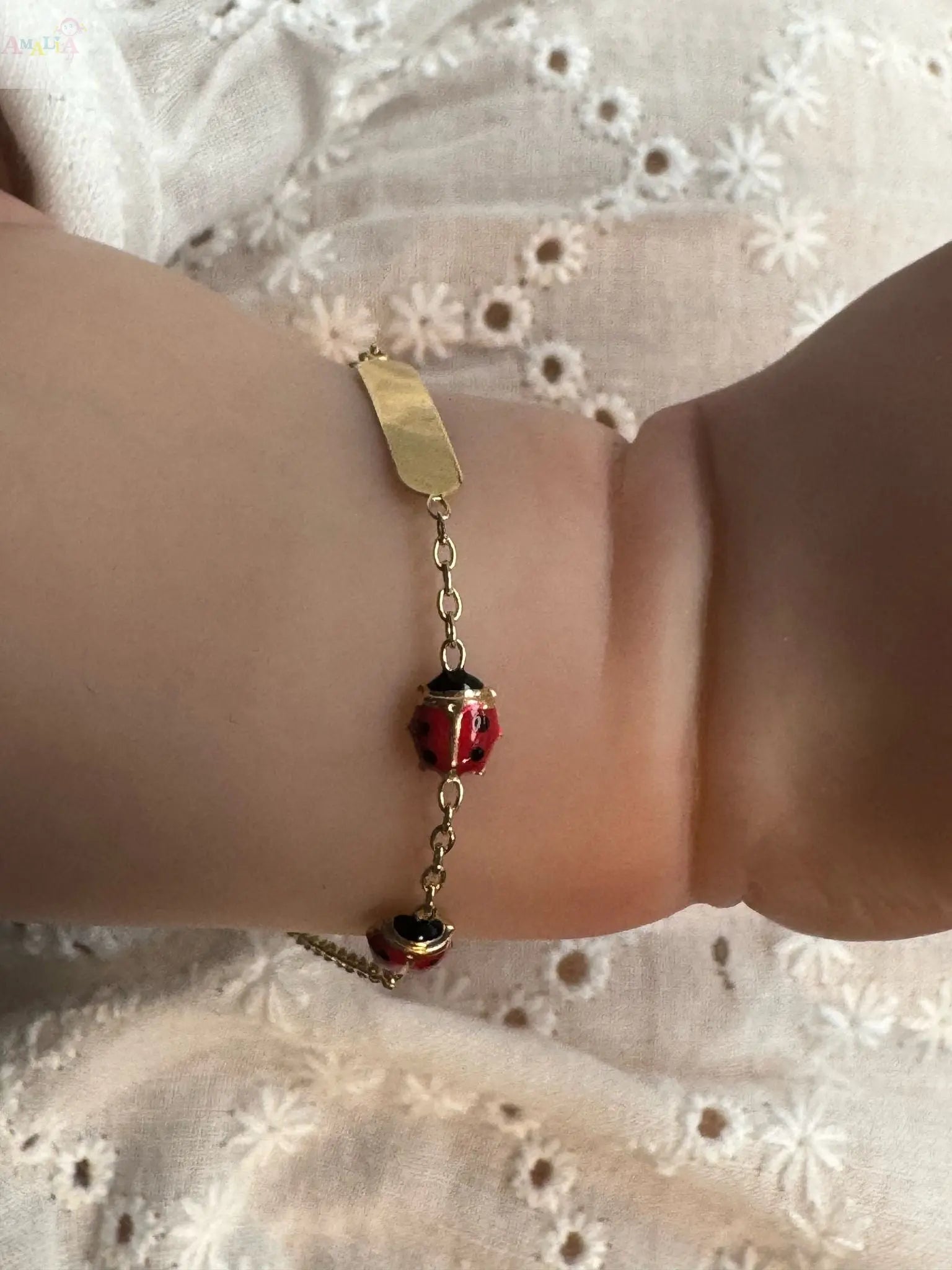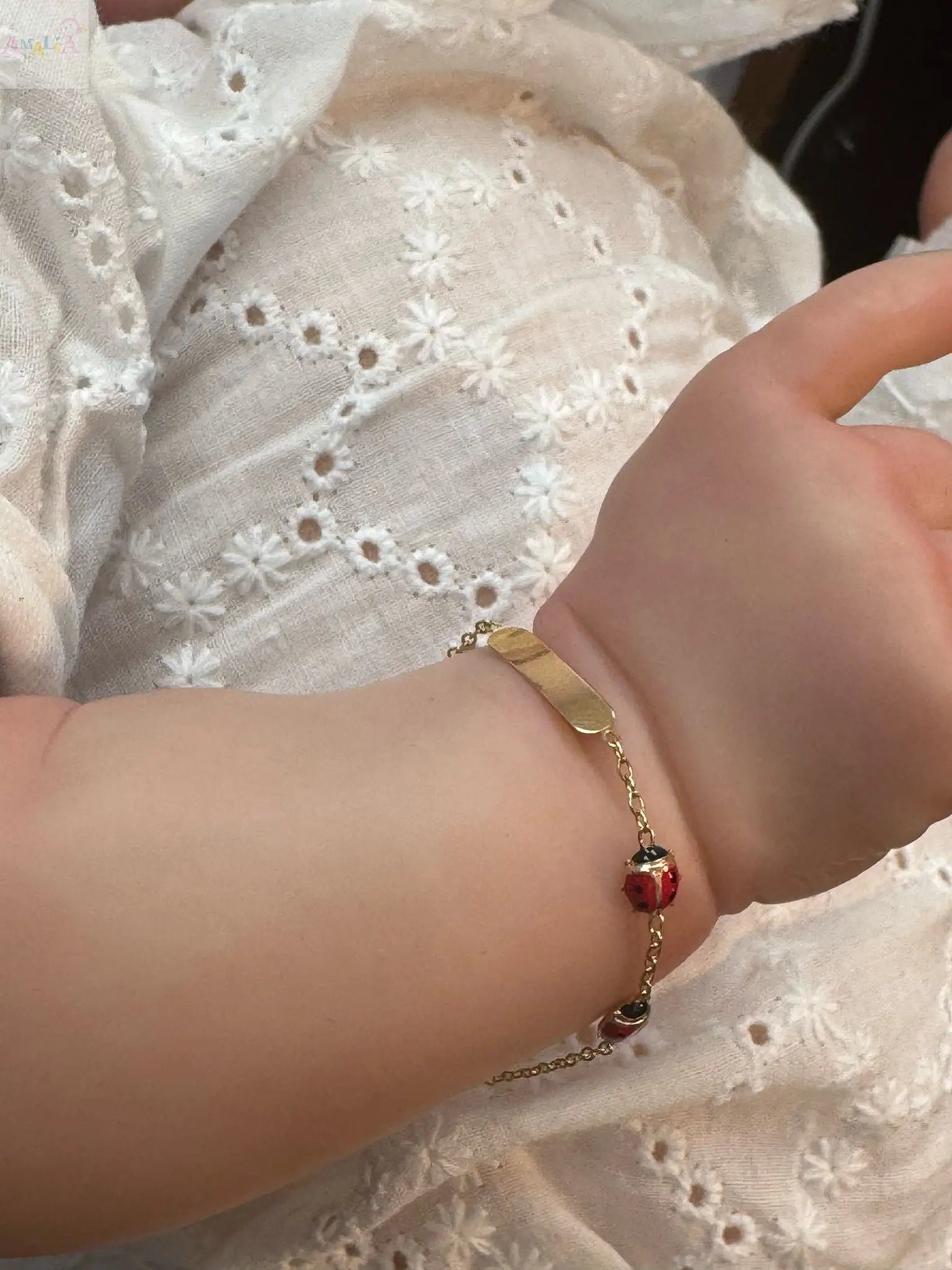 Découvrez le charme de notre bracelet ID en or jaune massif 18 carats avec deux coccinelles rouges jumelles, méticuleusement fabriqué en Italie à partir des meilleurs matériaux hypoallergéniques. Ce bracelet enchanteur, mesurant 5,5 pouces de long et présentant deux coccinelles rouges en émail éclatant, est bien plus qu'un simple accessoire ; c'est un symbole d'élégance et de bonne chance. Parfaitement conçu pour les tout-petits, avec un anneau supplémentaire à 4,80 pouces pour un ajustement réglable, il convient confortablement aux nouveau-nés jusqu'aux enfants de 5 ans. Chaque bracelet est sans plomb ni nickel, garantissant qu'il est doux pour les peaux les plus délicates. Idéal pour les occasions spéciales ou comme cadeau significatif, ce bracelet est joliment emballé dans une boîte et un sac cadeau Amalia, prêt à être chéri. Sublimez la collection de bijoux de votre enfant avec des boucles d'oreilles assorties à vis ou à tige, disponibles séparément. Ce bracelet est parfait pour ceux qui recherchent des bijoux en or de haute qualité, sans allergie, pour enfants, qui ajoutent non seulement une touche de style mais apportent aussi chance et joie.