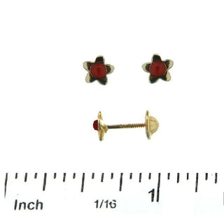 Sublimez le style de votre petite avec les boucles d'oreilles à fermoir à vis couvert en or jaune 18 carats avec petite étoile en corail