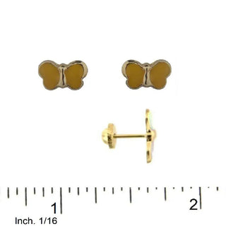 Boucles d'oreilles à vis papillon petites en émail jaune or jaune massif 18 carats
