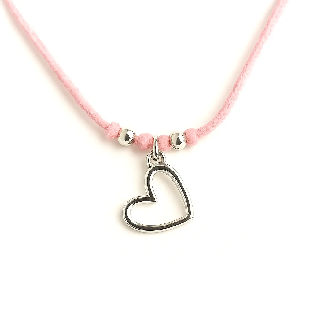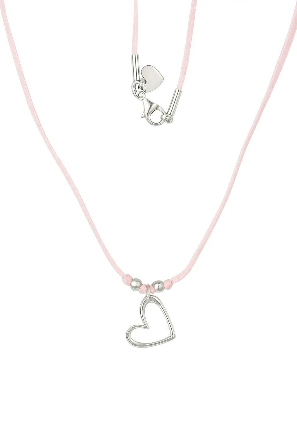 Sublimez votre collection de bijoux avec le collier pendentif cœur ouvert en argent sterling sur cordon rose — un accessoire intemporel qui dégage élégance et charme.