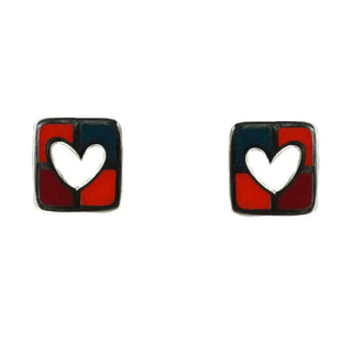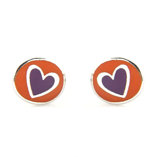 Boucles d'oreilles à tige en argent sterling avec cœur ouvert émaillé orange