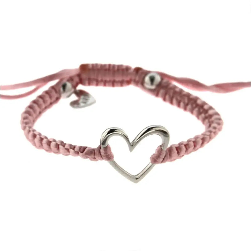 Doté d'un cordon rose élégant, le bracelet est réglable jusqu'à 7 pouces, assurant un ajustement confortable et sécurisé pour différentes tailles de poignet. Au centre se trouve un charm en forme de cœur ouvert magnifiquement travaillé, mesurant 0,55 x 0,63 pouces, fabriqué en argent sterling de haute qualité. Ce détail en forme de cœur ajoute une touche de sophistication et de charme au design global.