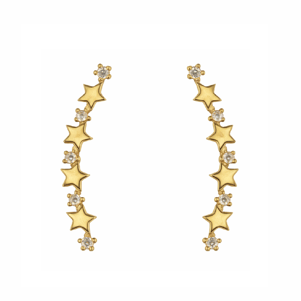 עגילי פוסט מטפסים מכוכבים מלוטשים מזהב צהוב טהור 18 קראט ואבני זרקוניה