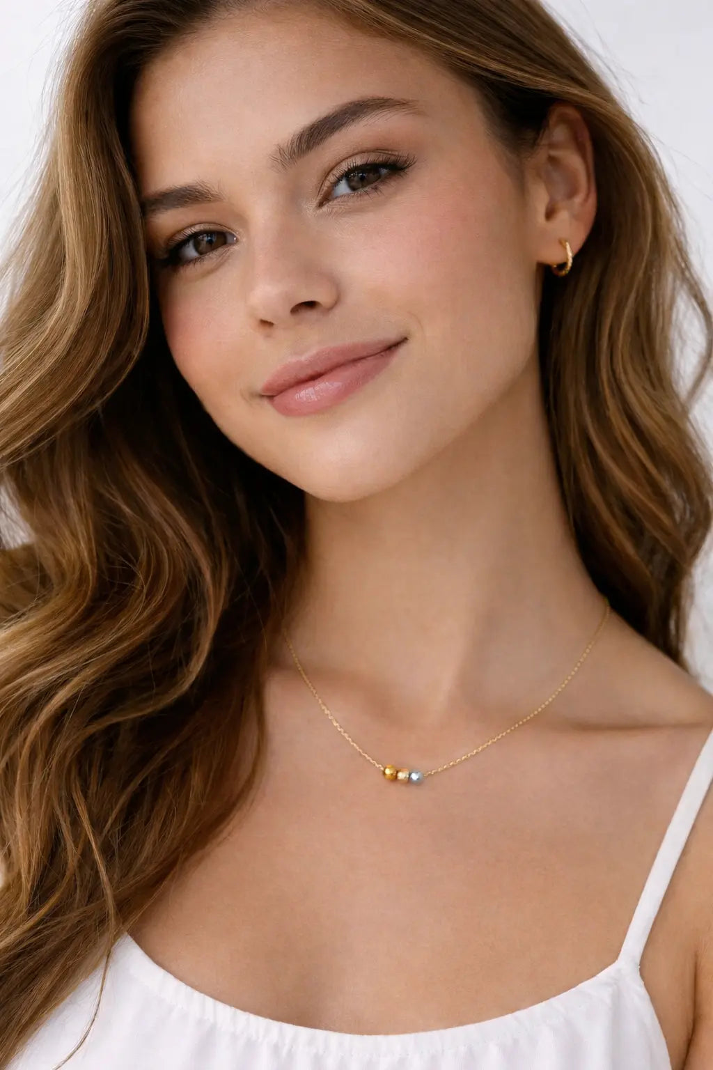 Crafted with timeless Italian elegance, this 18K Solid Tricolor Gold Polished Mini Rondel Necklace is a delicate piece designed for everyday sophistication. Made in Italy from genuine 18K hypoallergenic gold, it features three tiny polished rondels measuring 3.8 mm in diameter, beautifully combining white, pink, and yellow gold for a subtle yet radiant tricolor effect. The contrast of tones creates dimension while remaining refined and minimal.