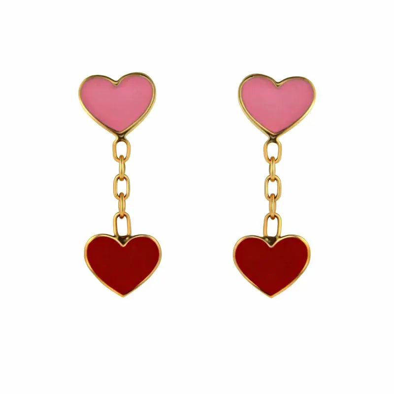 愛を祝福し、心からの美しさの本質を抱きしめる魅力的な18Kイエローゴールドの赤とピンクのエナメルハートのダングルポストイヤリング。これらの魅力的な小さなイヤリングは、愛と愛情を象徴する可愛らしいピンクと赤の小さなハートが繊細に揺れています。魅力的なデザインは若い心の純真さと無垢さを捉えており、小さな女の子のジュエリーコレクションに素晴らしい追加となります。