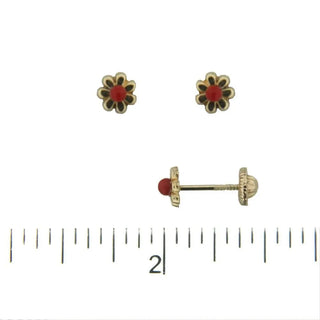 Introducing our exquisite 18 Karat Solid Yellow Gold Coral Flower Screwback Earrings, a beautiful and meaningful addition to any child's jewelry collection. Coral is often associated with symbolism such as protection, good luck, and emotional healing. Our earrings feature a coral paste centered flower design, adding a touch of elegance to any outfit.