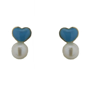 These 18K Gold Blue Enamel Heart and  Pearl Screwback Earrings are not only stylish and elegant, but also practical and safe for little girls to wear. The 5mm x 8mm (0.20 inches x 0.31 inches) size is just perfect for newborns up to 10 year olds, and the 4mm cultivated pearl adds a touch of sophistication to these sweet earrings.