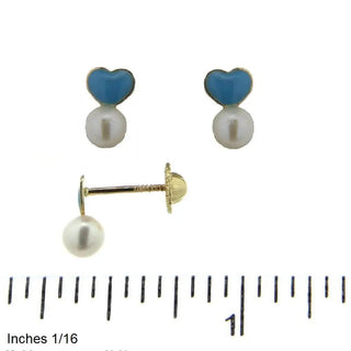 So why not give the little girl in your life a gift that she'll cherish for years to come? Order these 18K Solid Yellow Gold Blue Heart and Pearl Covered Screwback Earrings today and let her sparkle and shine!