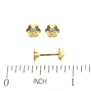 18K Gold Diamond Cut Zirconia Flower Screwback Earrings