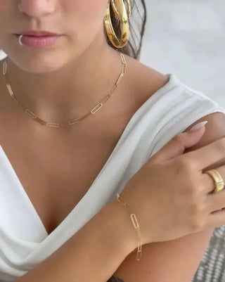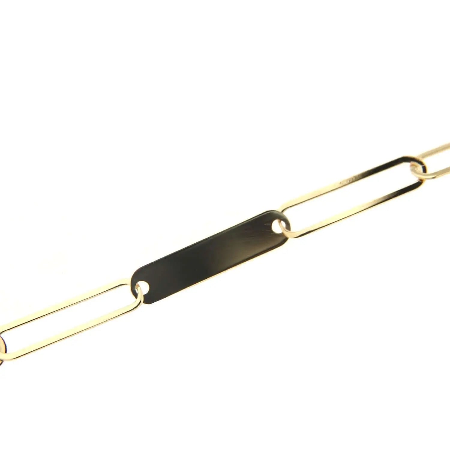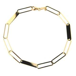 Discover the unique charm of our 18k Gold Flat Paper Clip Open and Closed Links Bracelet. This beautifully crafted piece, made in Italy, features a sophisticated paperclip style with alternating open and closed links that offer an option for personalized engraving. Measuring 7 inches in size, the bracelet is perfect for a subtle yet stylish statement. Crafted from hypoallergenic 18K yellow gold that is both lead and nickel-free, it ensures comfort and safety for all skin types. Each bracelet is beautifully presented in an Amalia Gift Box, making it an ideal gift, especially for Mother's Day. Imagine the joy of gifting this exquisite bracelet, possibly engraved with children's names, adding a personal touch that celebrates the bond between a mother and her children. Order now to give a gift that combines elegance, personalization, and timeless style. This unique bracelet not only enhances any outfit but also serves as a lasting symbol of love and thoughtfulness.