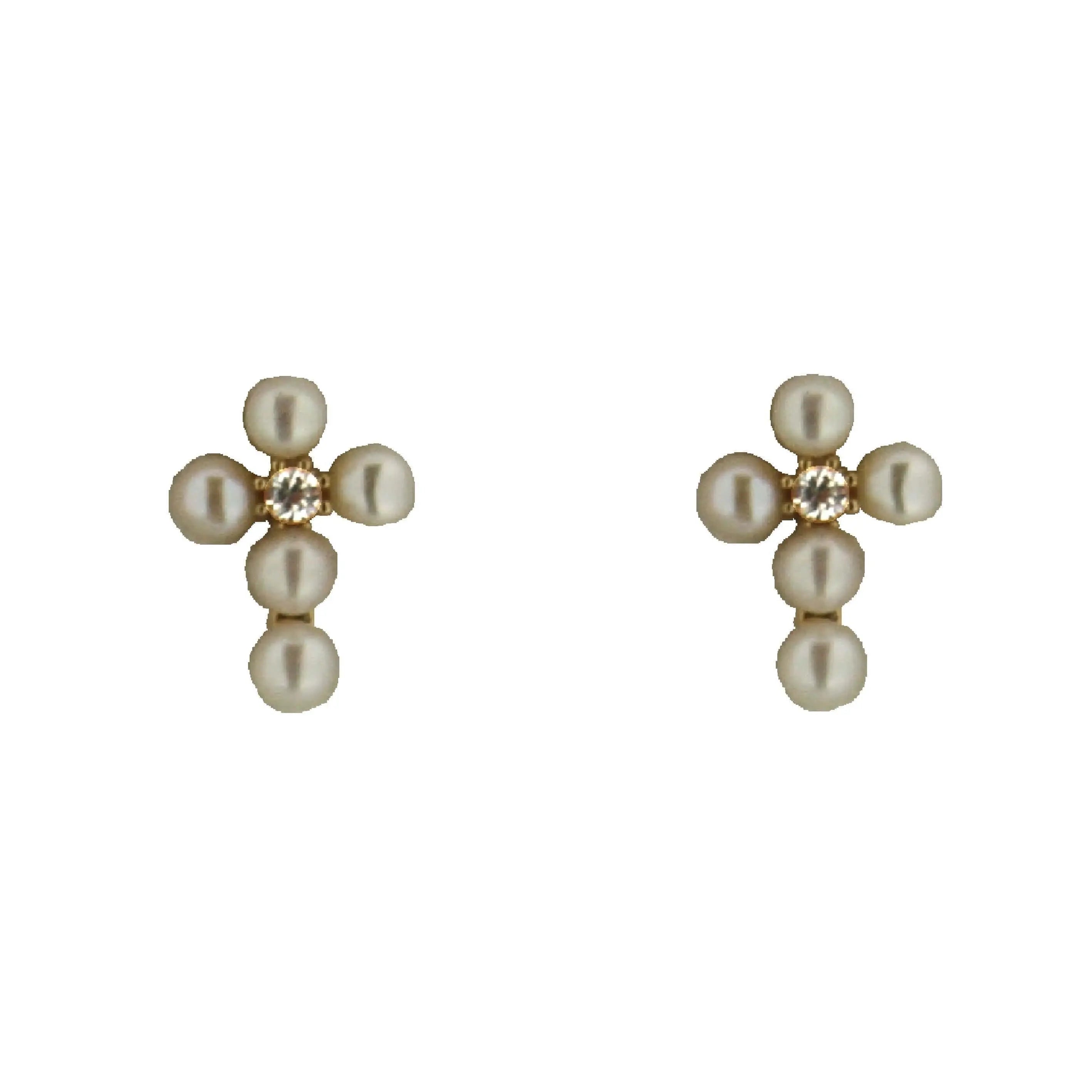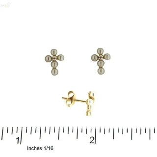 Elevate their special moments with the enchanting 18K Solid Gold Center Zirconia Pearls Cross Earrings, designed to add a touch of elegance and grace to any young individual's attire. Perfect for communions, weddings, birthdays, or as a meaningful gift, these petite treasures measure 0.37 x 0.27 inches (9.4 x 6.9 mm), embodying a blend of delicacy and sophistication.