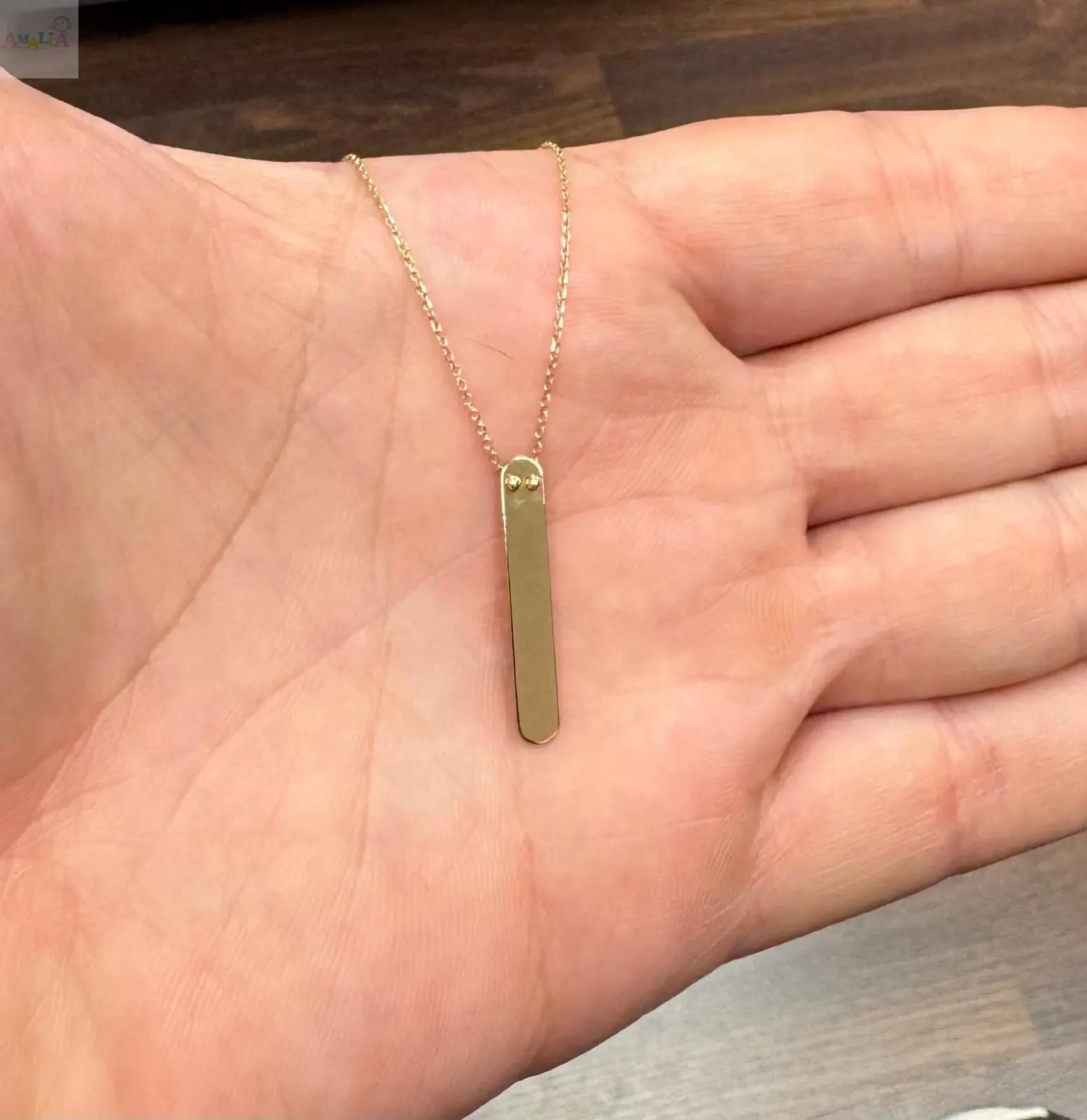 The vertical bar pendant is perfectly designed for customization, offering a smooth surface that can be engraved from top to bottom. Whether it’s your initials, a special date, or a meaningful quote, this necklace allows you to add a personal touch that makes it uniquely yours.