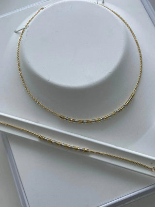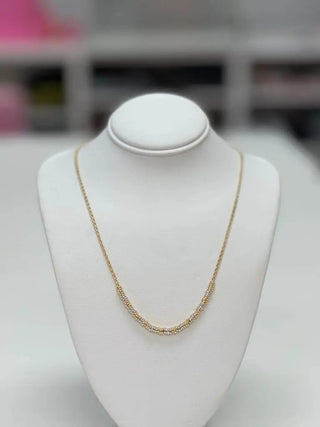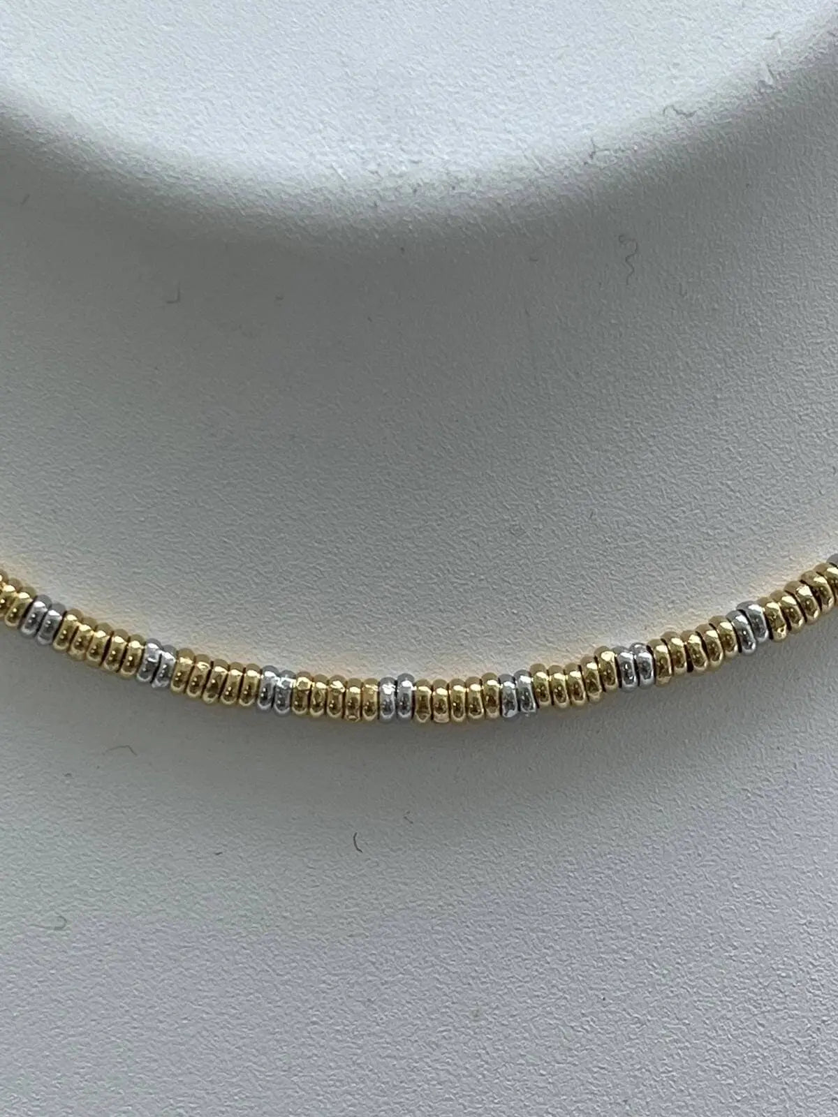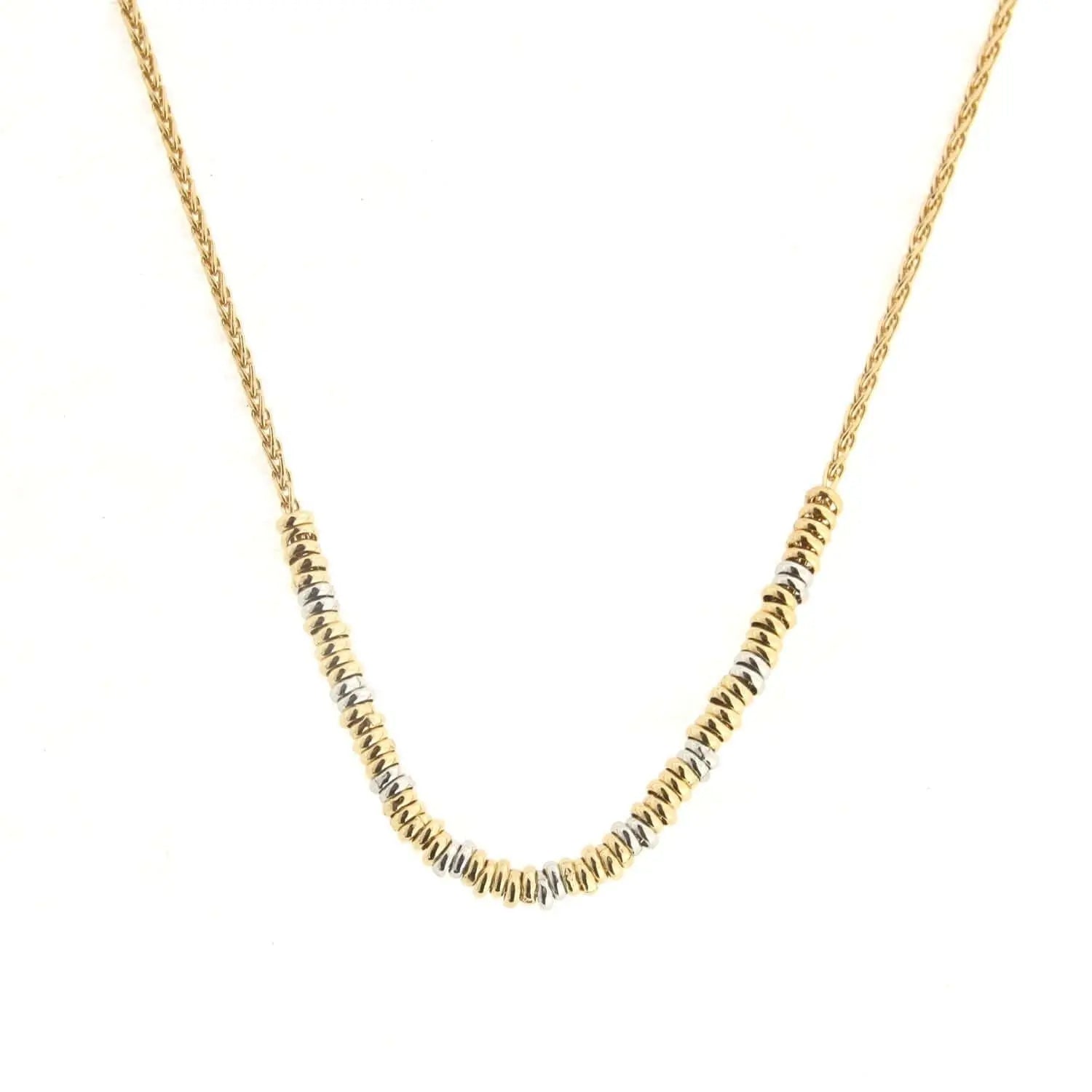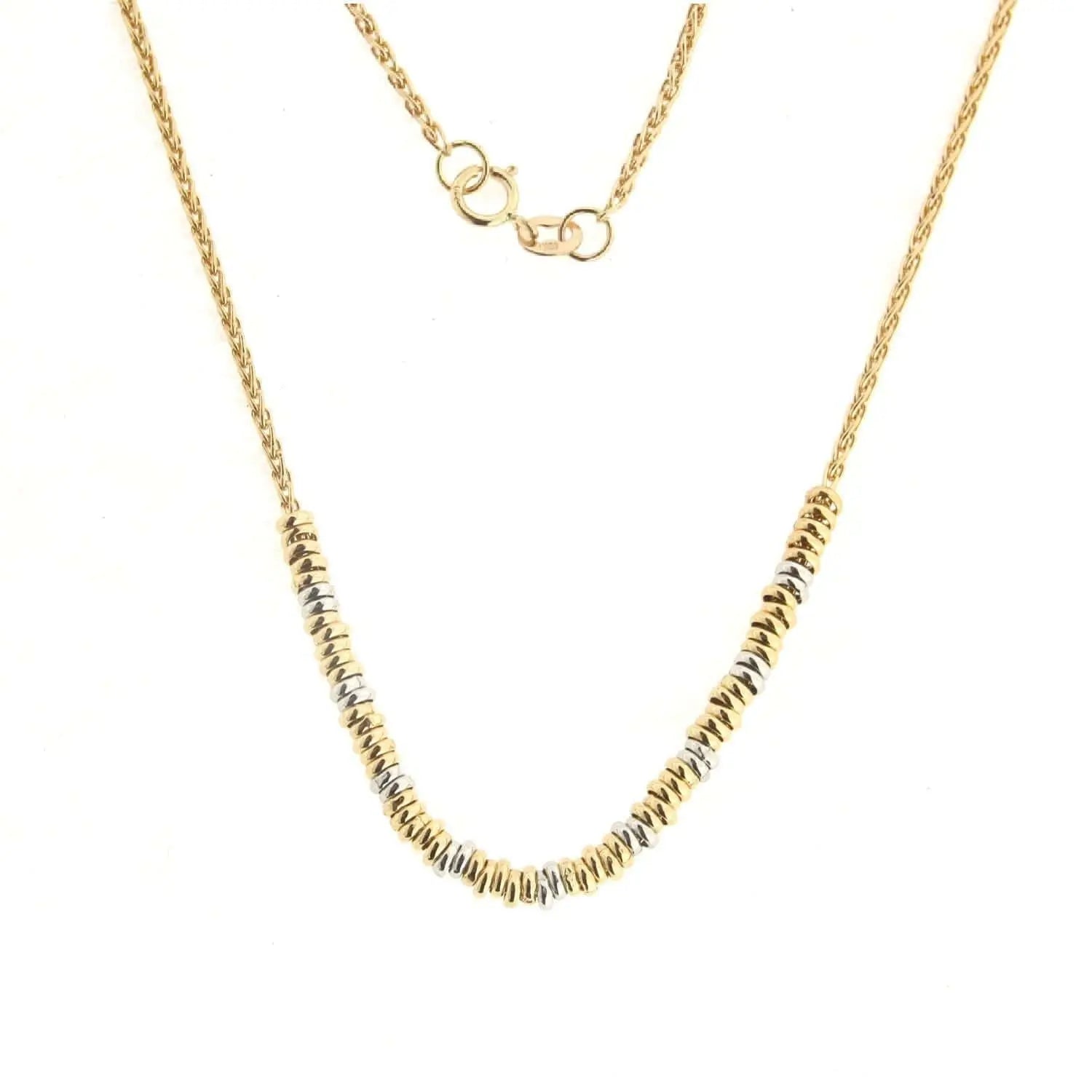 18K Solid Yellow and White Gold Polished Roundels Necklace Light Wheat chain 17 inches with extra ring at 15 inches