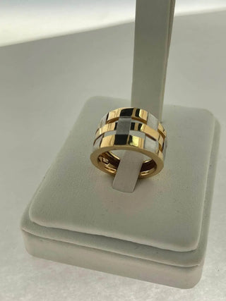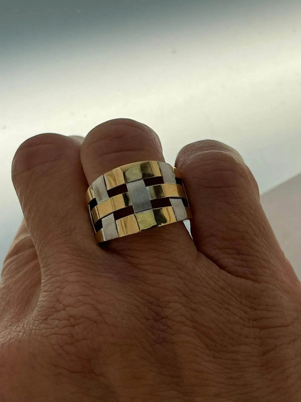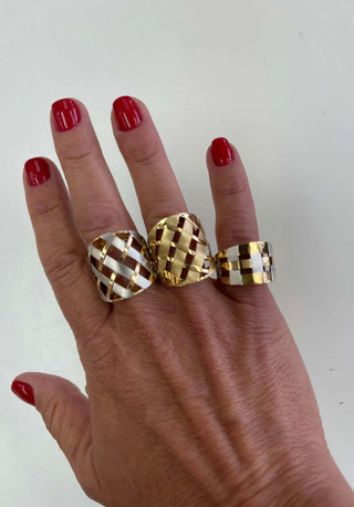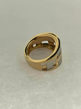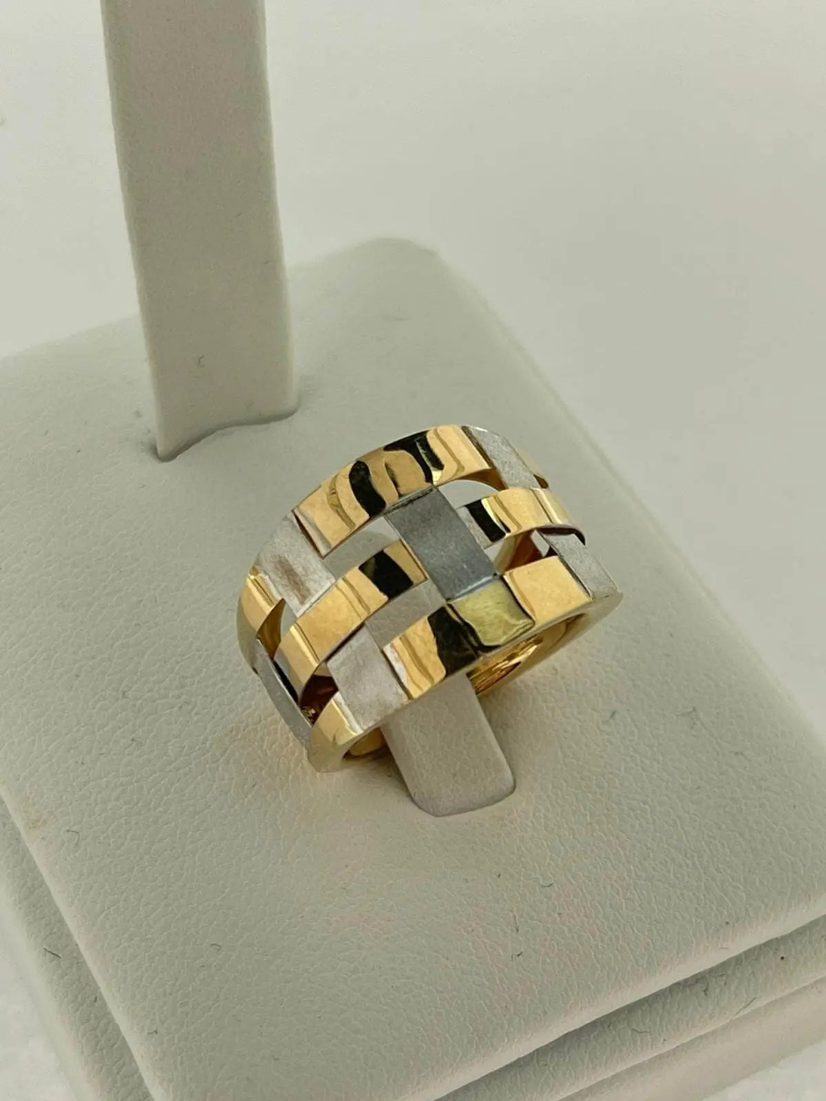 18K solid Yellow & White Gold open weaved ring - size 6.75