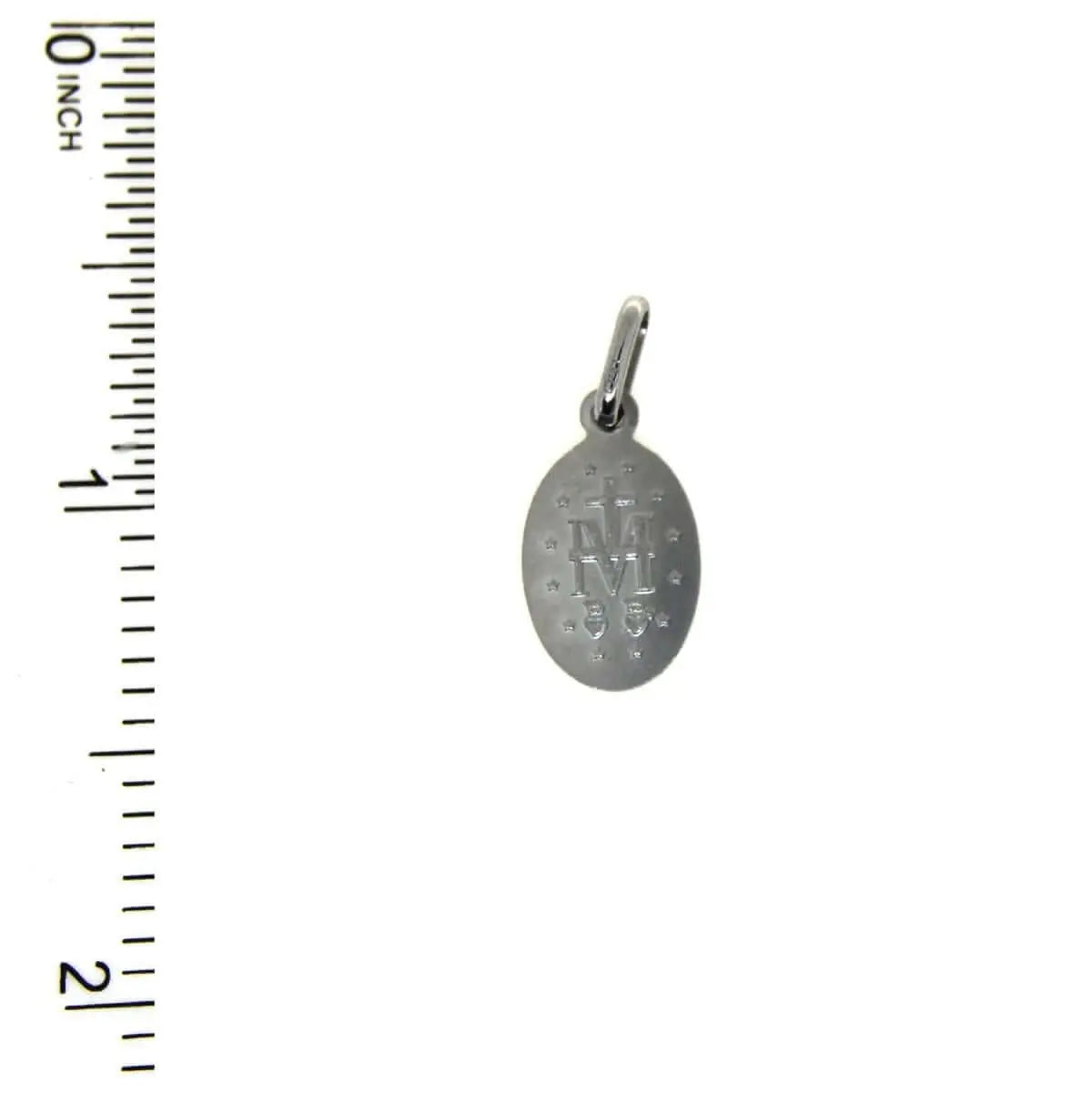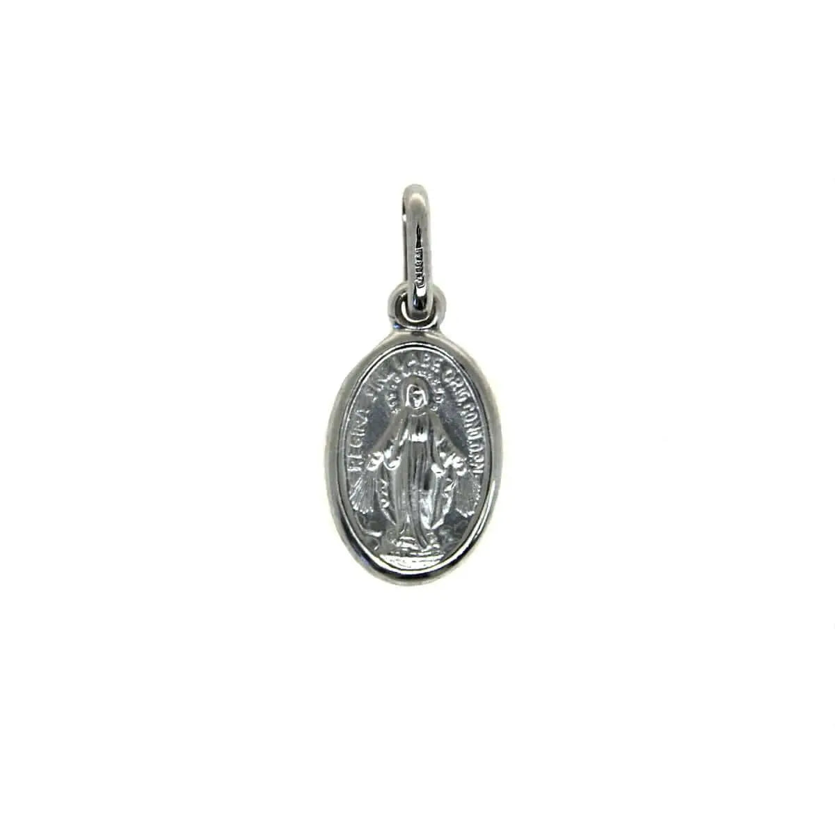 Celebrate devotion and grace with our 18K Solid White Gold Small Oval Miraculous Medal 14mm. This exquisite Italian-crafted medal measures 14 x 9 mm (0.55 x 0.35 inches) and, with its bail, extends to 0.82 inches. Made from hypoallergenic, lead- and nickel-free white gold, it is not only beautiful but also perfect for sensitive skin.