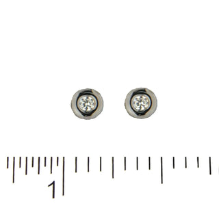 18K Solid White Gold Zirconia Bezel Screwback Earrings