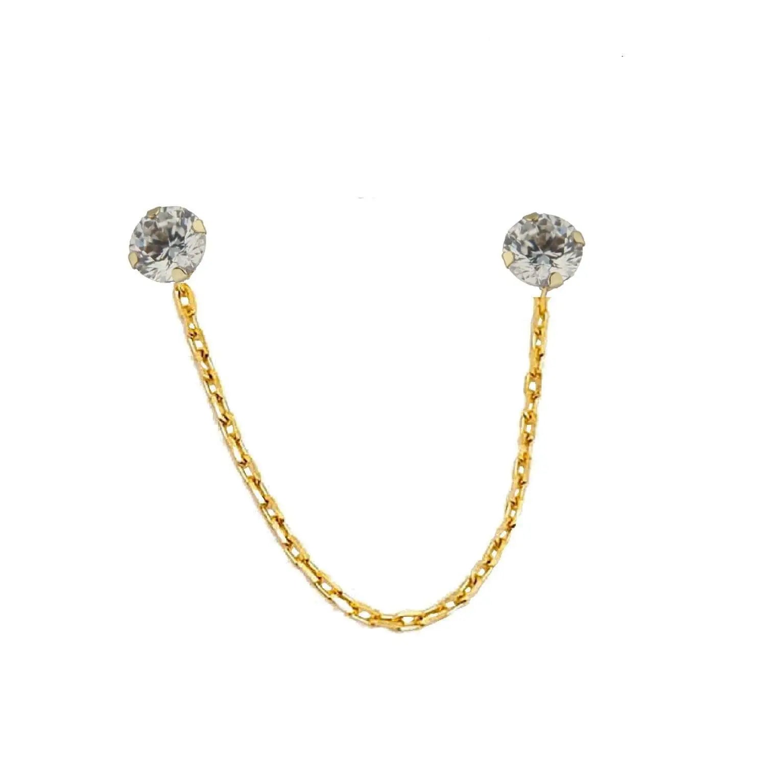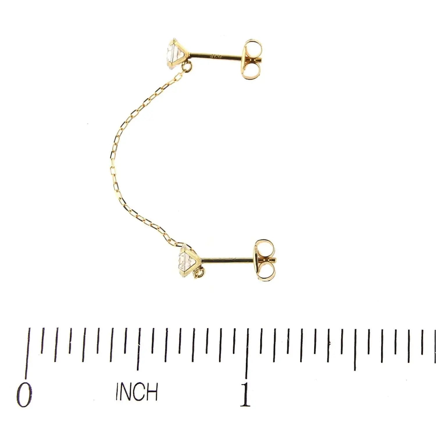 18k Solid Yellow Gold 4 mm Double Zircon Chain Studs Post earring .