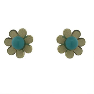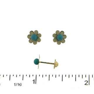 18K Solid Yellow Gold 4mm Turquoise Flower Screwback Earring