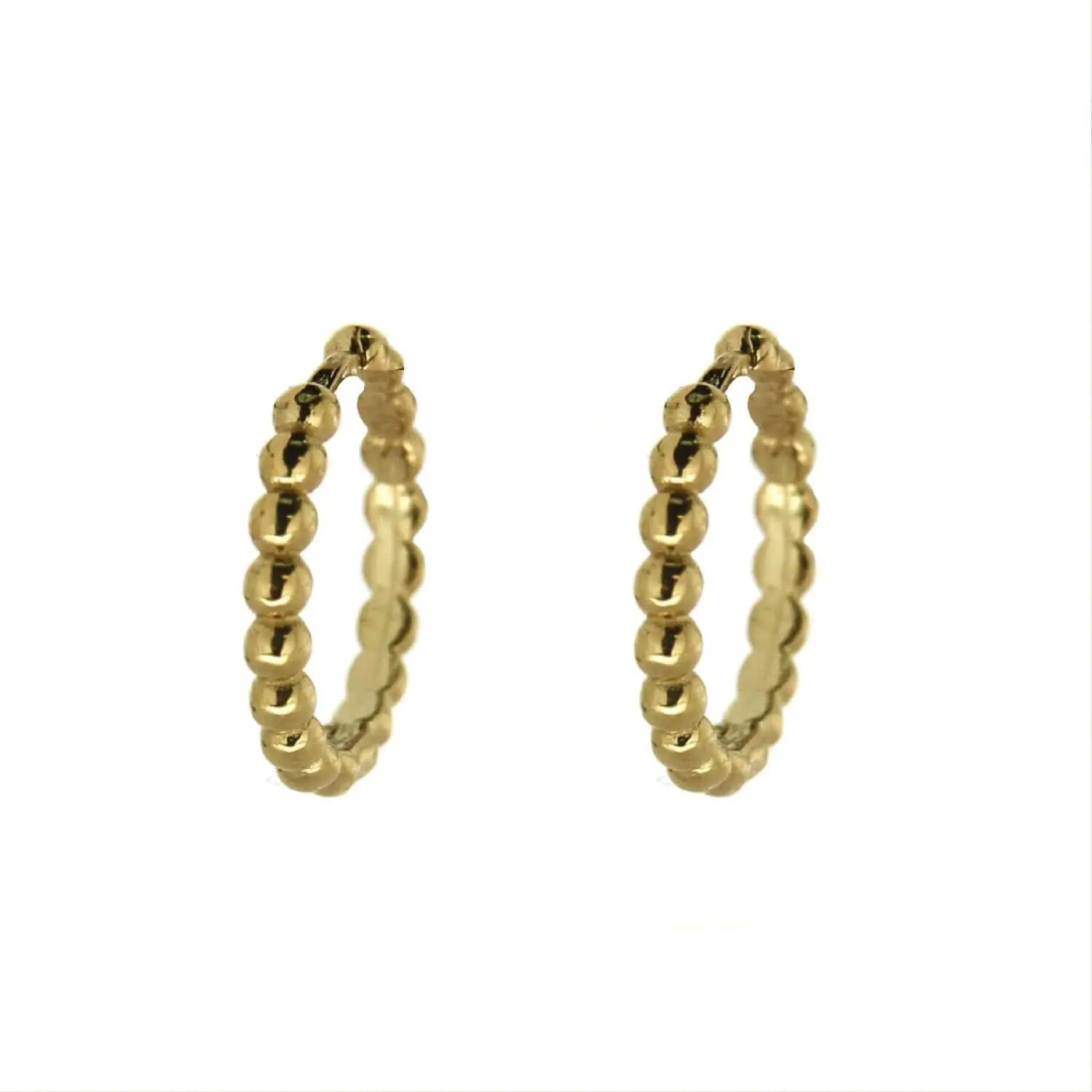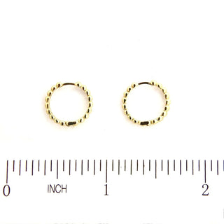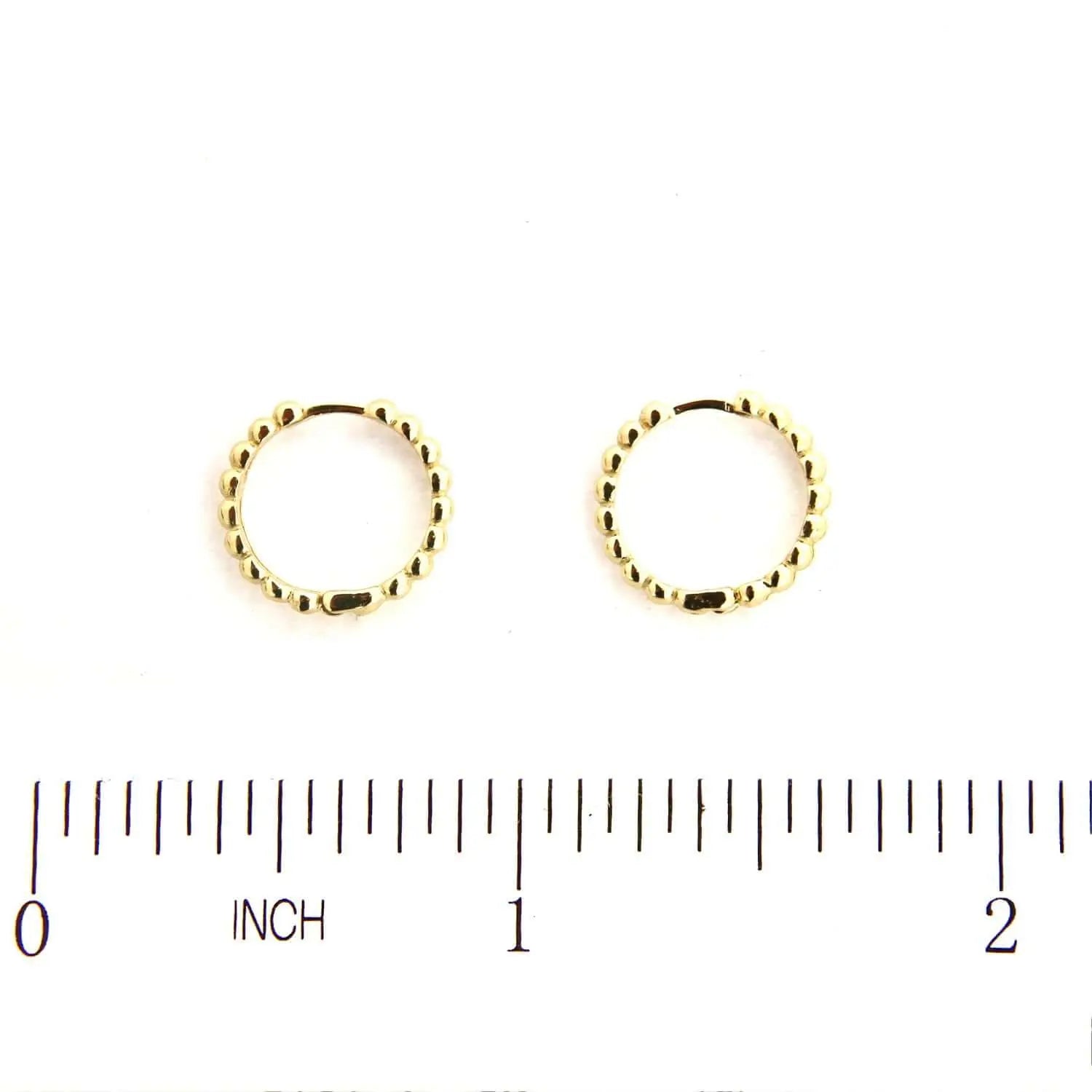 18K Solid yellow Gold Bead Hinged Huggie Earrings front and back 12mm