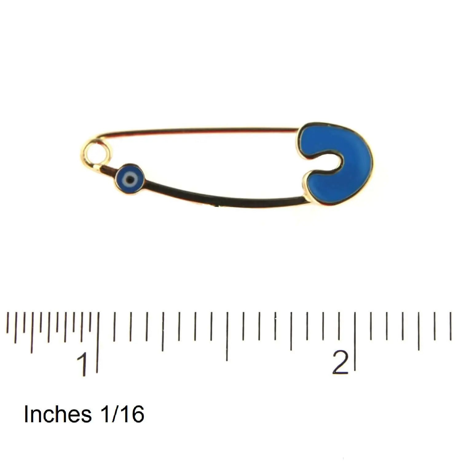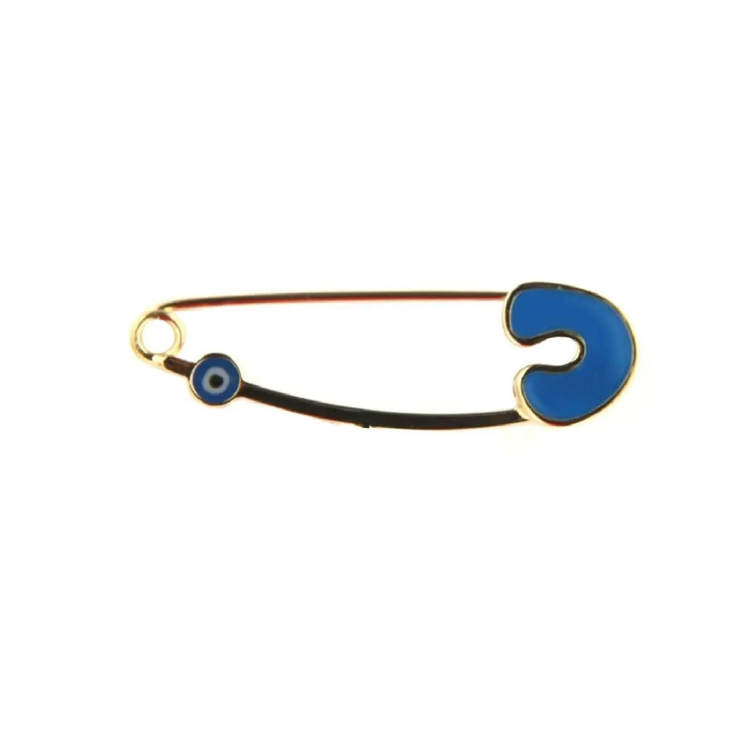 Mark the joyous moments of welcoming a new baby boy with our elegant 18k Solid Yellow Gold Blue Enamel Mini Evil Eye Safety Pin. This stylish token of affection measures 1.10 inches and is crafted from hypoallergenic 18K solid yellow gold, ensuring it is gentle on the most delicate skin.