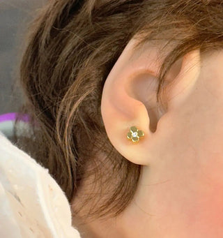 Add Whimsy with 18K Solid Yellow Gold Clover Zirconia Screwback Earrings