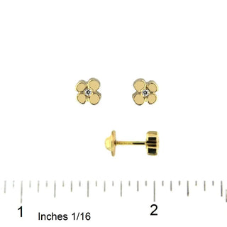 18K Solid Yellow Gold Clover Zirconia Screwback Earrings