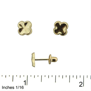 18K Solid Yellow Gold Concave Four Leaf Clover Covered Screwback Earrings