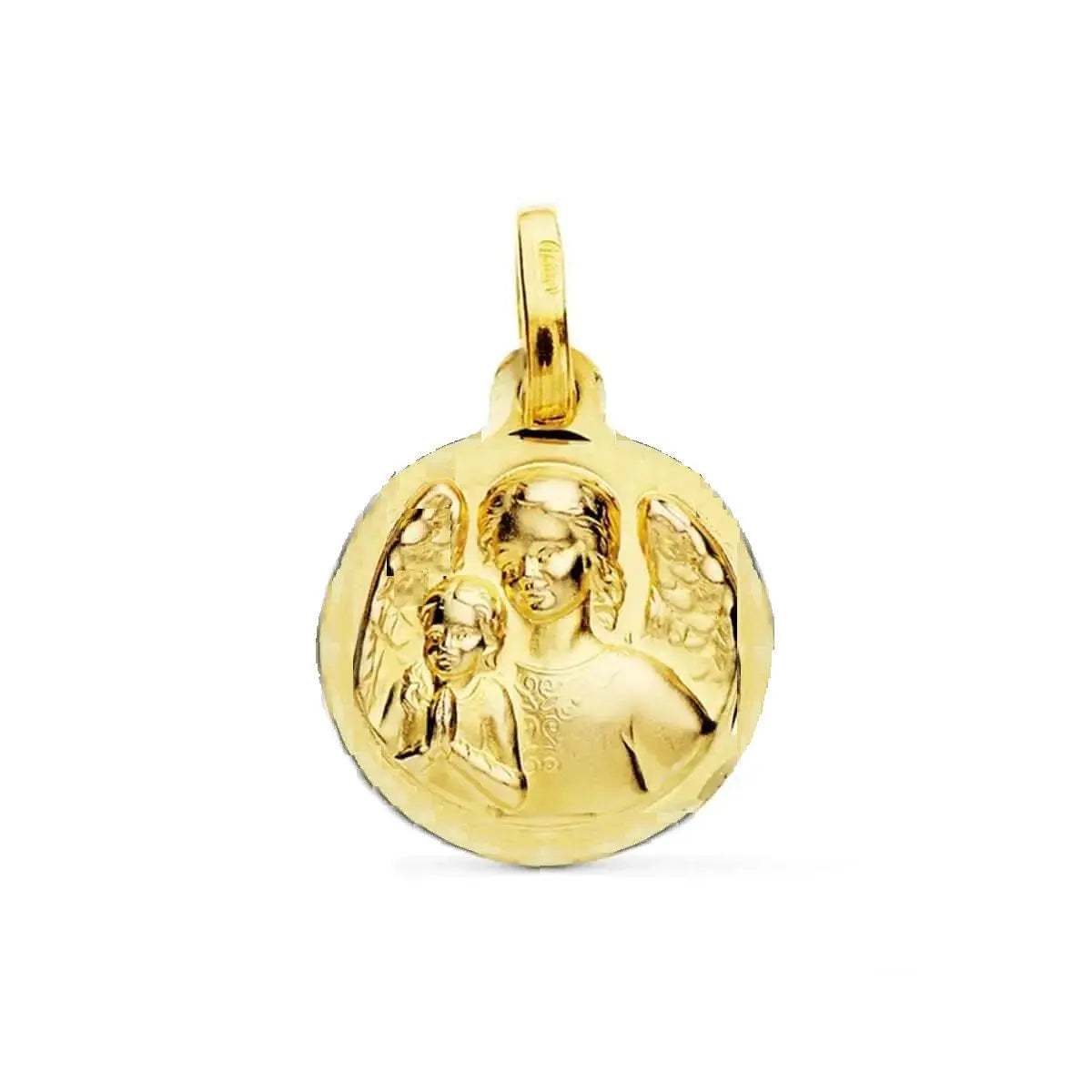 Experience the comforting presence of a celestial protector with our 18K Solid Yellow Gold Diamond cut Guardian Angel Medal . Crafted in Spain, this exquisite medal showcases a guardian angel standing beside a praying child, symbolizing watchfulness and purity. The angel's wings are adorned with a meticulous diamond cut design, enhancing the medal's brilliance and spiritual significance.
