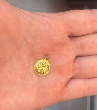 This 14mm medal, measuring 0.55 inches in diameter, is made from hypoallergenic 18K solid yellow gold, ensuring it is lead and nickel-free and gentle on sensitive skin. Guardian angels are revered as protectors and guides, offering assurance and spiritual connection in times of need. This medal captures the essence of their nurturing presence, making it a meaningful addition to any jewelry collection.