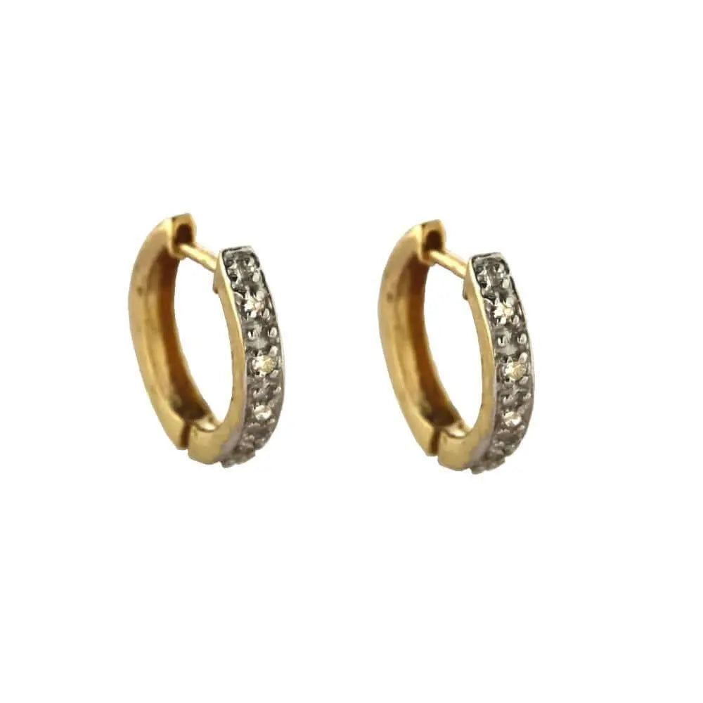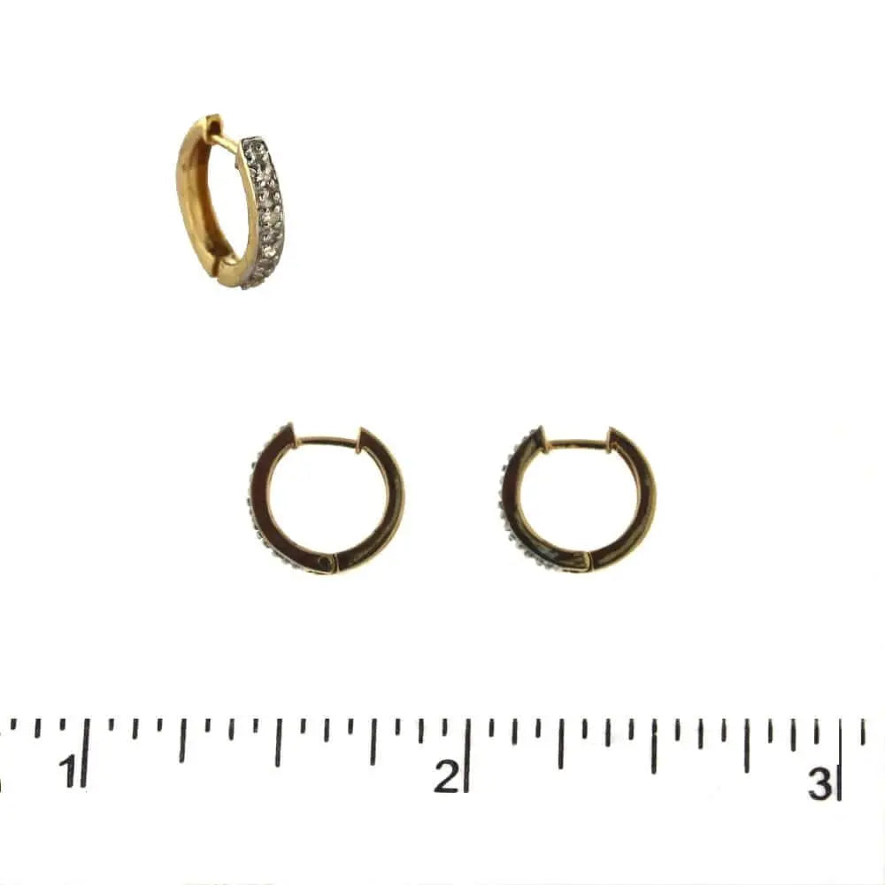 18K Solid Yellow Gold Diamond Hinged Hoop Huggie Earrings Diameter 0.43 in 11mm