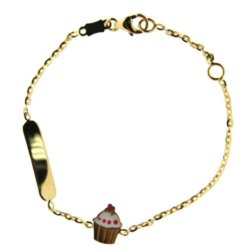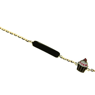 Celebrate your little princess with our 18k Solid Yellow Gold with Enamel Cupcake ID Bracelet. Measuring 5.5 inches with an extra ring at 4.75 inches, this beautiful piece is perfect for girls from newborn to 6 years old. The vibrant enamel cupcake design adds a touch of fun to this elegant bracelet. Hypoallergenic, this bracelet is gentle on delicate skin, making it the perfect present for any occasion. With the Amalia Gift Box and Bag included, this bracelet makes a thoughtful and unforgettable gift. Personalize it with an engraving for an extra special touch.