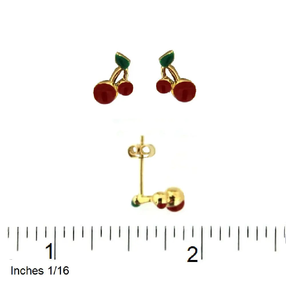 Discover the perfect blend of elegance and whimsy with our 18K Solid Yellow Gold Enamel Large Cherry Post Earrings. Designed for both adults and kids, these charming earrings measure 0.37 x 0.25 inches (9.5 x 6.5 mm), making them an eye-catching yet dainty accessory.