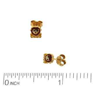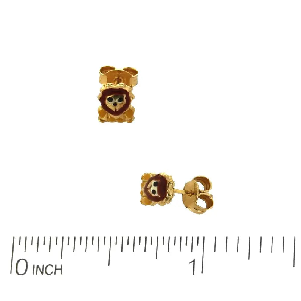 18K Solid Yellow Gold Enamel Small Lion Post Earrings