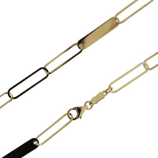 Enhance your accessory collection with the sophisticated 18k Solid Yellow Gold Flat Paper Clip Necklace 17 inches. Crafted with a distinctive pattern of three open links and one polished closed link, this necklace exudes modern elegance. Measuring 17 inches in length and 0.15 inches in width, it’s designed to drape gracefully around the neck, making it a versatile piece for both layering and solo wear.
