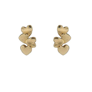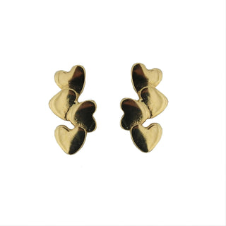 18K Solid Yellow Gold Four Polished Hearts Covered Screw back Earrings