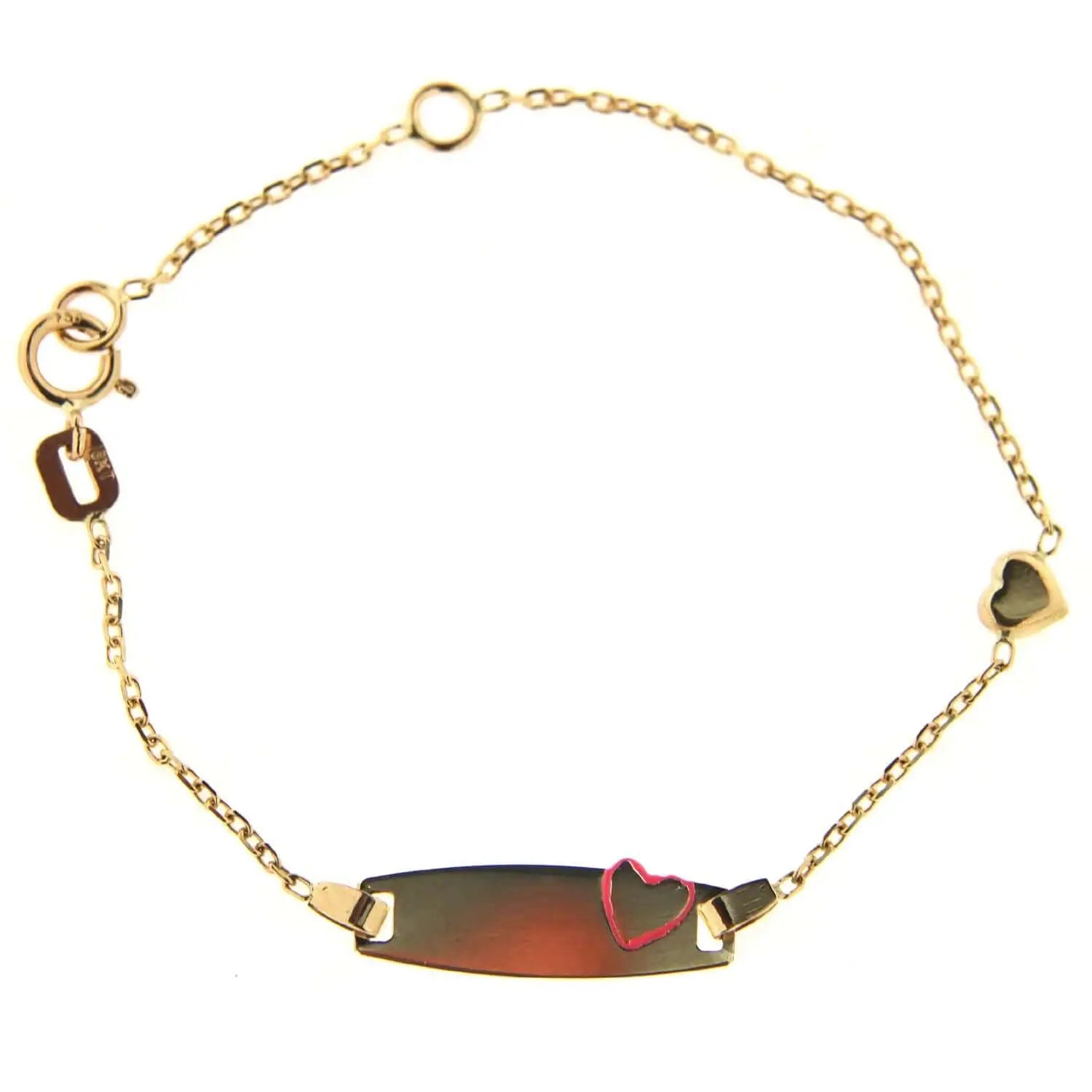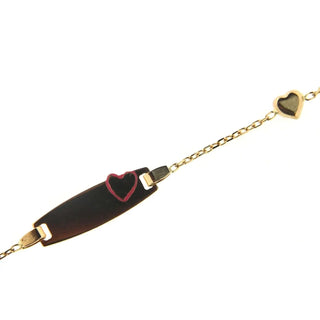 18K Solid Yellow Gold Fuchsia Enamel border heart Bracelet
