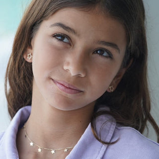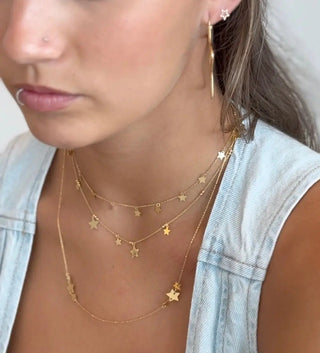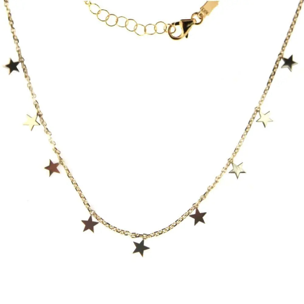 18K Solid Yellow Gold Hanging MIni Starss Necklace 17 inches with extra rings starting at 16 inches Stars H 0.15 inch